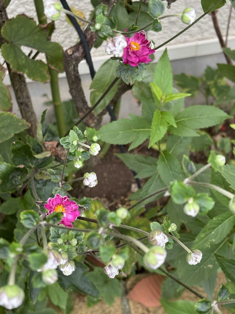 アベルモスクス(アジアンハイビスカス),狭い庭,シュウメイギク♡の投稿画像