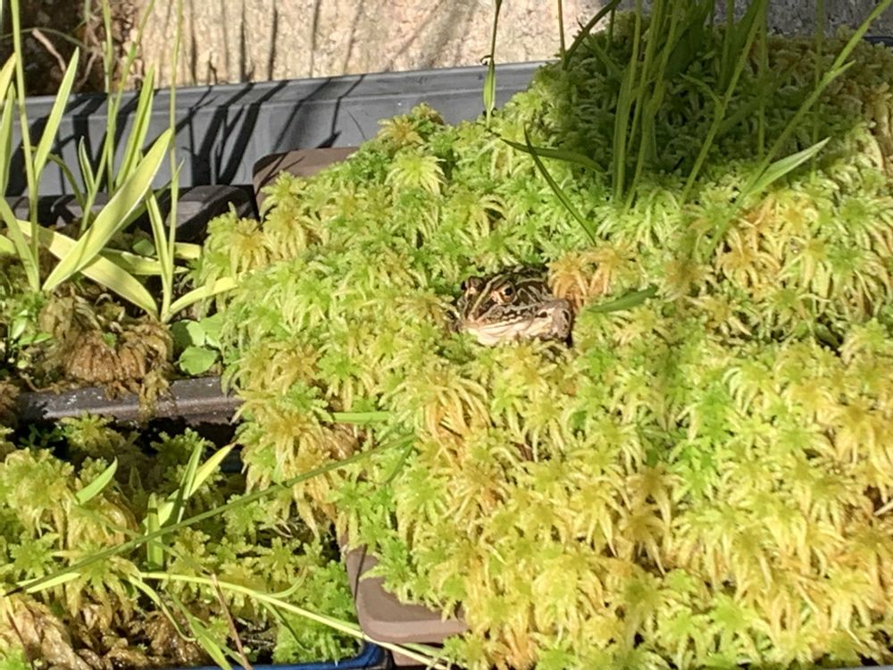枯れ始めてきた蓮の葉を片付けてきてます😀どこまでレンコンが育ってきてるかな❓😀その後ろのサギソウも実が出来てきてたのでチョキン✂️ミズゴケの布団でくつろいでるトノサマガエル😅お山のパトロールから帰ったら、カールくんがシーツ外で漏らしてました😅💦シーツの上でしてください😓