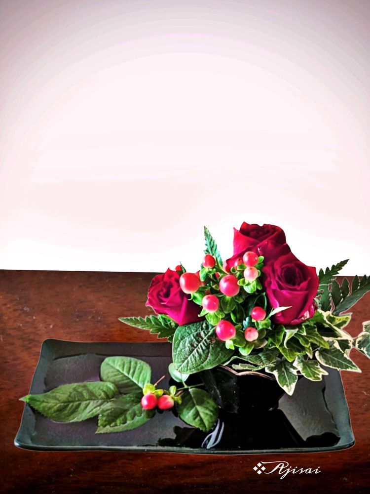 黒いお皿に、赤いバラ🌹('∇^d) ナイス☆!!