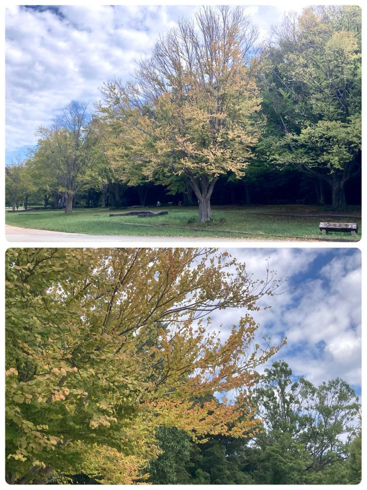 公園の樹木で紅葉が1番早いのは「カツラ」の木だ。