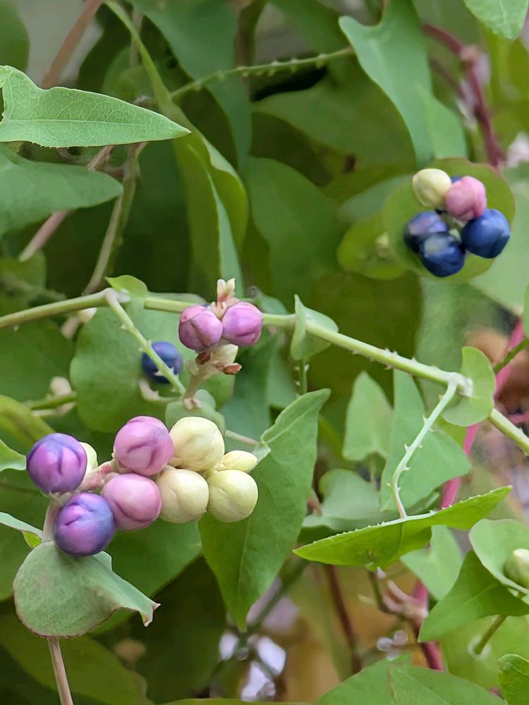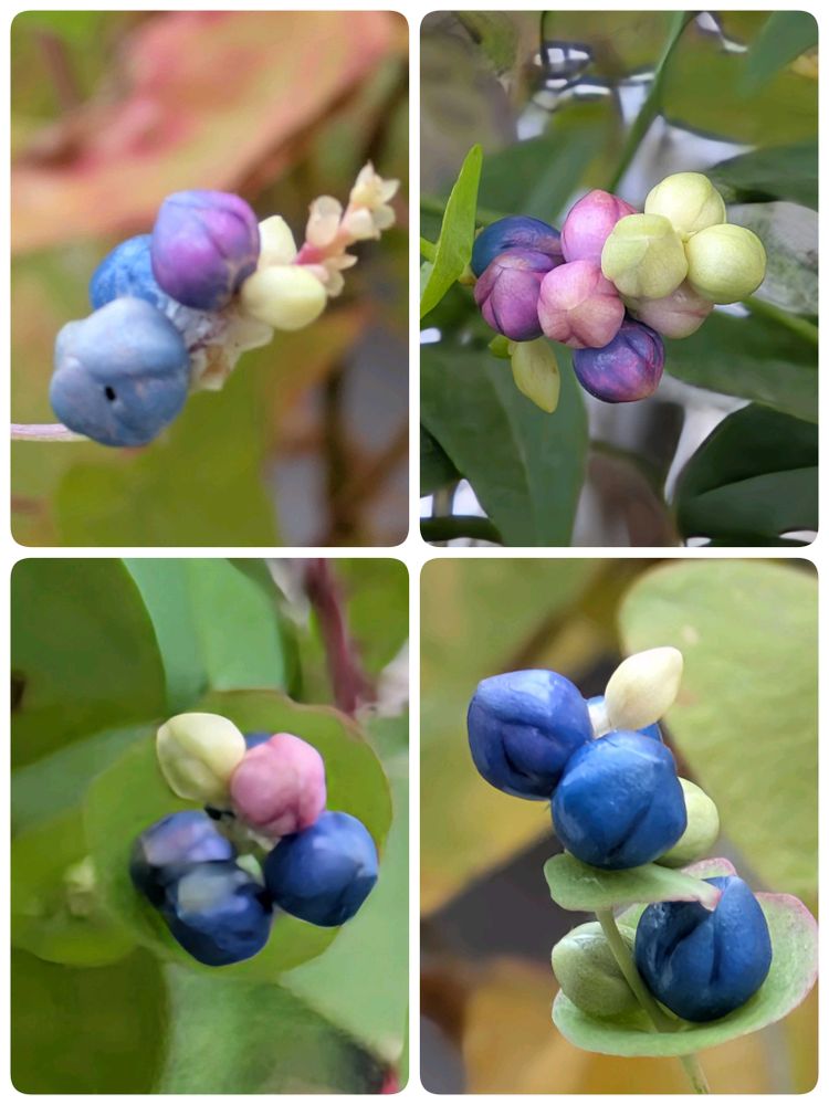 お花と未熟な果実は緑色で目立ちませんが果実は とても綺麗で感動です🩷💗💜💙