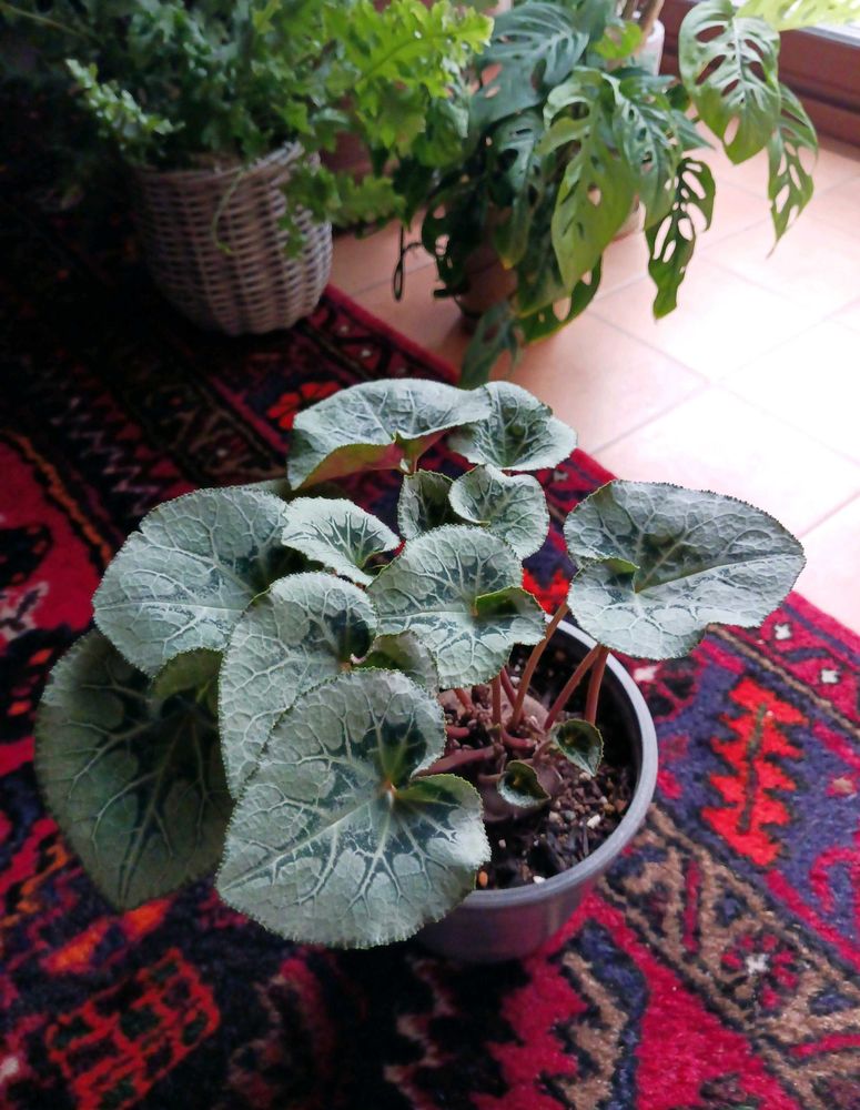 冬越しが怖くてレックスベゴニアに手を出せない欲求不満をだいぶ解消してくれるシクラメンの葉っぱ。
