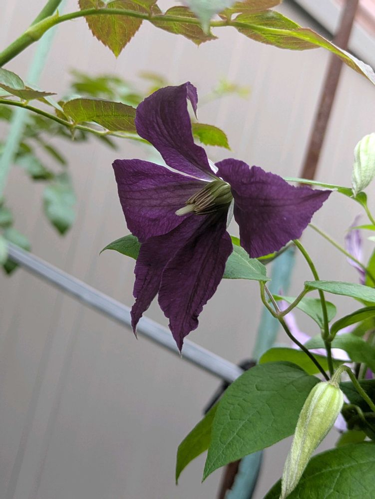 ジャックマニーは、昨日いい色で咲いていたけど、風が強くて揺れて撮れませんでした。少し色あせました。