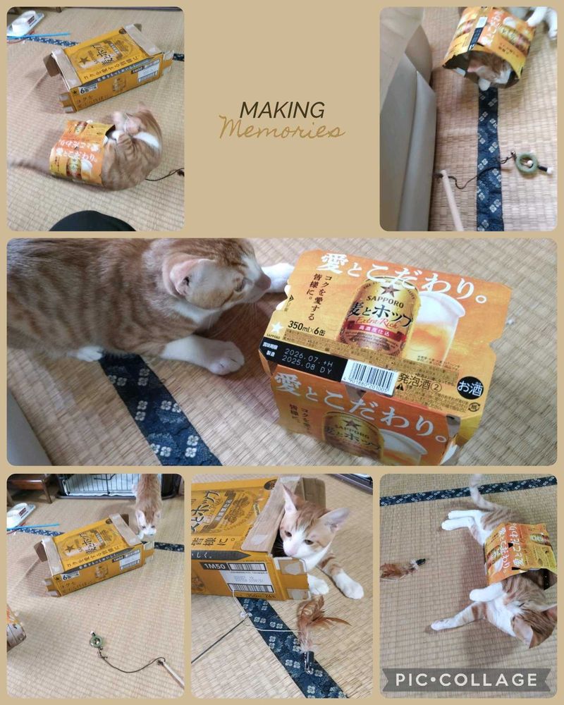 チャミ君も、元気に、暴れまくってます😆空き箱が大好きで、出たり入ったり、騒動してます😊😺🙆✌️🎶。