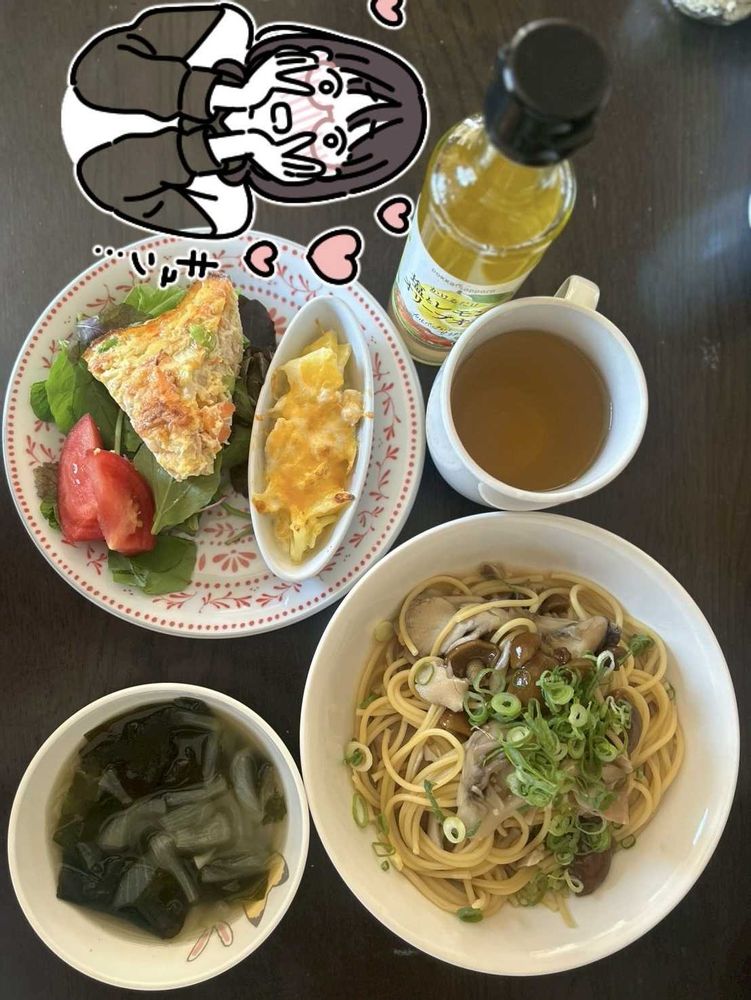 きのこ🍄🍄🟫がたくさん入った、手作りスパゲッティランチ🍽️美味しかったです😋