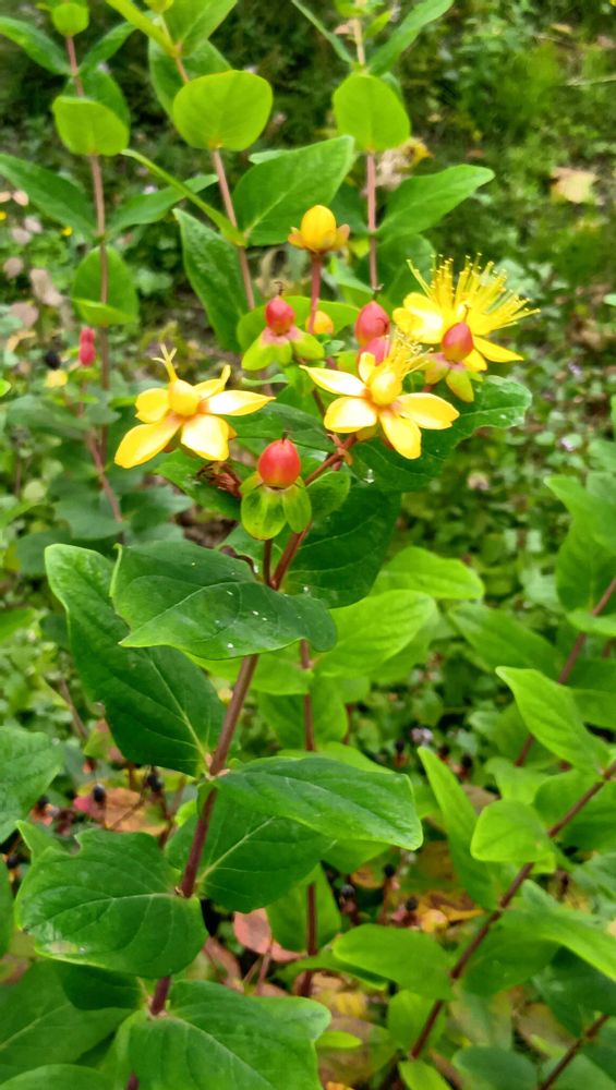 ヒペリカム アンドロサエマムは 小坊主弟切と呼ばれますが これは つやつやの実が小坊主の頭を思わせることに由来します。