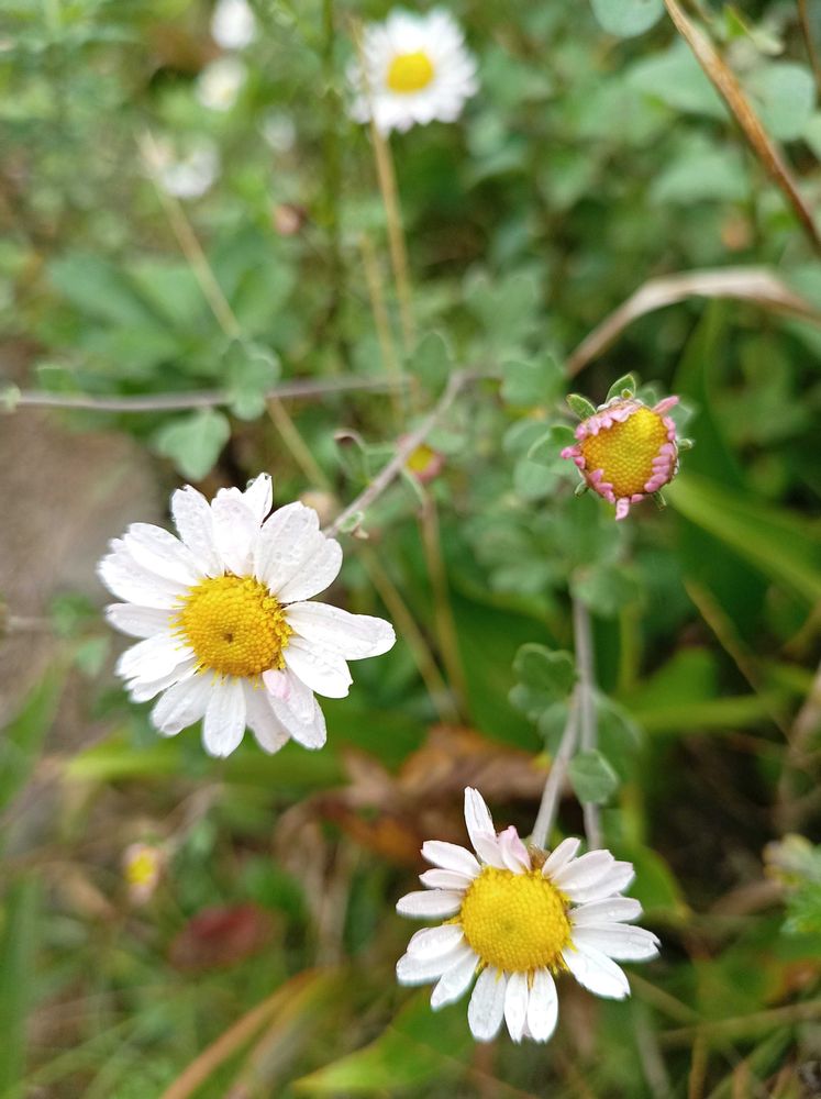 頭花は直径2.5~5㎝。舌状花は白く、数が多い。