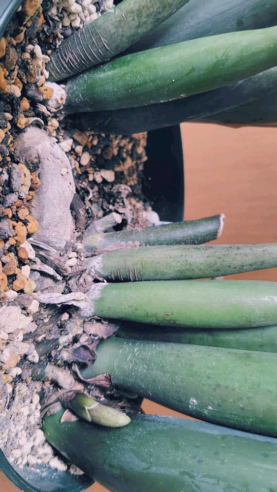 土は肩部分のみ、鉢底石を巻き込んだ姿。(📷しとけば良かったと、後で気づづく)