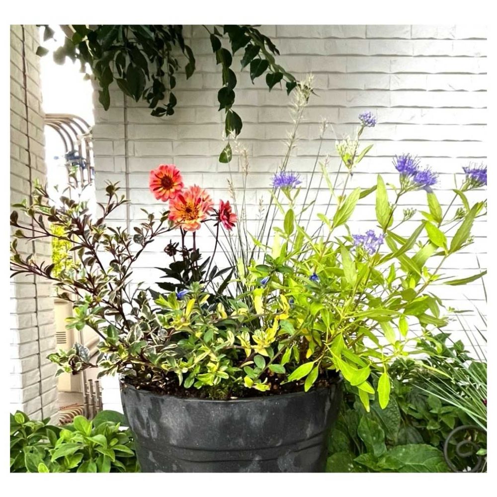 広い鉢の寄せ植えは組み合わせが難しく感じますが、さすが紫陽花さん、バランスよくて感心します✨✨