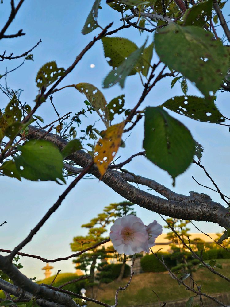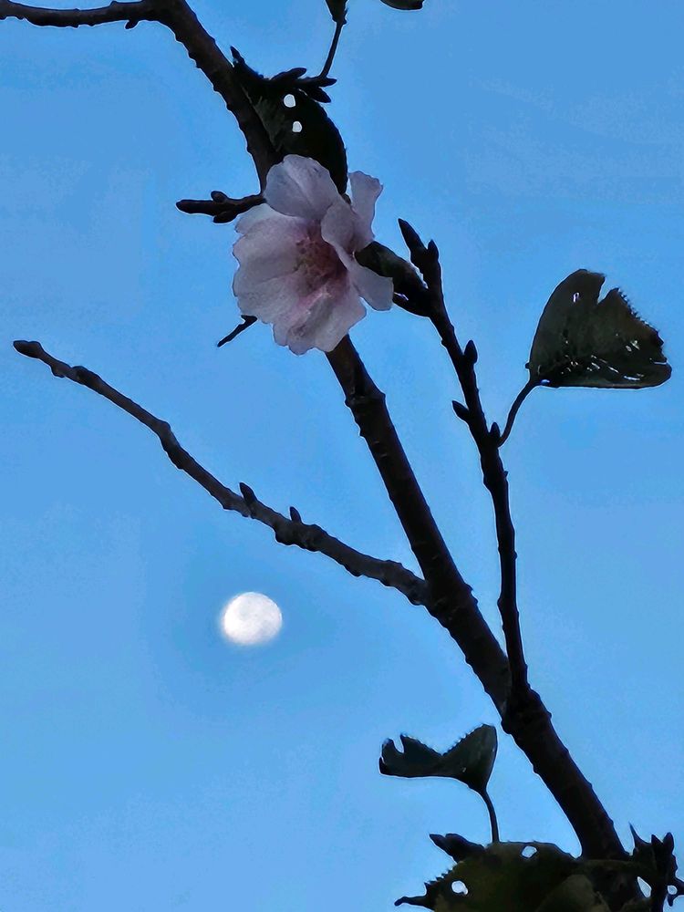 おはようございます。まっ赤なばらも、咲いてました🌹、いつもの、十月🌸と、後は十月桜とお月様です🌸🌓