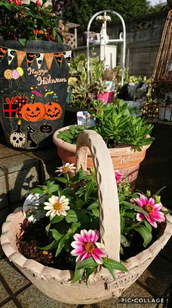 以前から持っていた手前の植木鉢にお迎えしたジニアさん