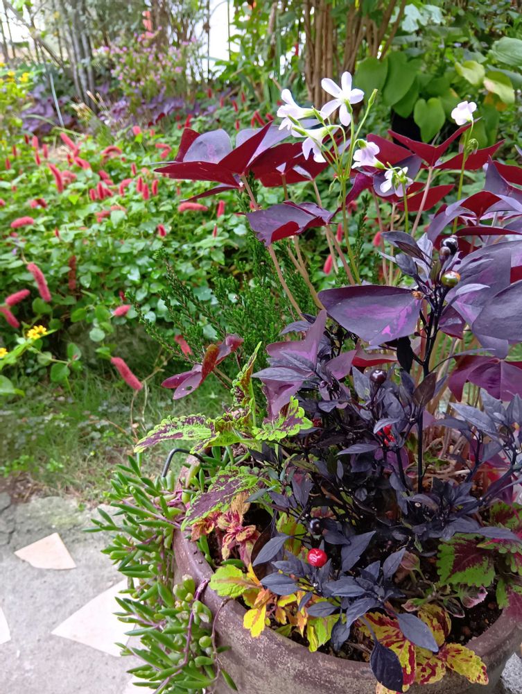 ④⑤寄せ植えの中の紫の集団達💜