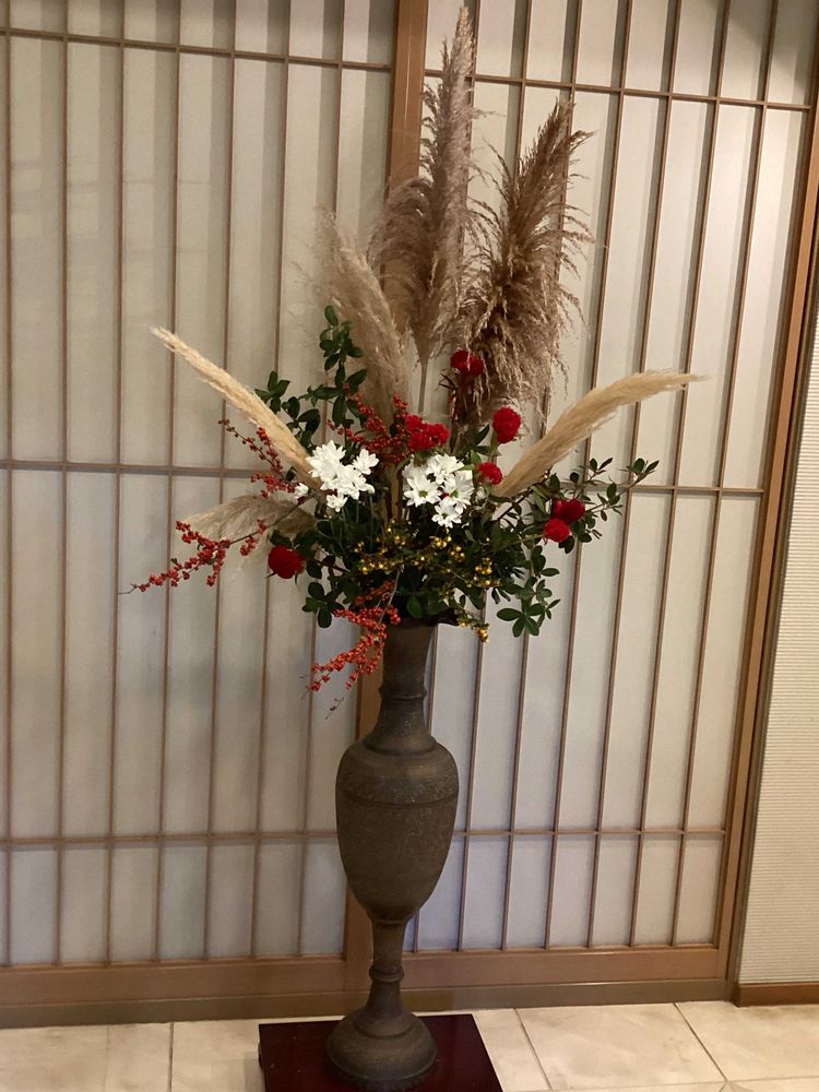 秋本番の花々が花瓶にさしてあり