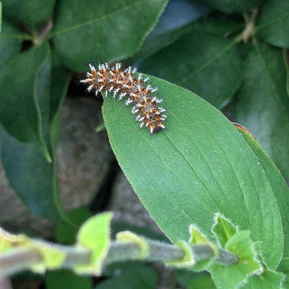 ところで④は、我が家で先日羽化した ルリタテハ の幼虫さんのようだけど~