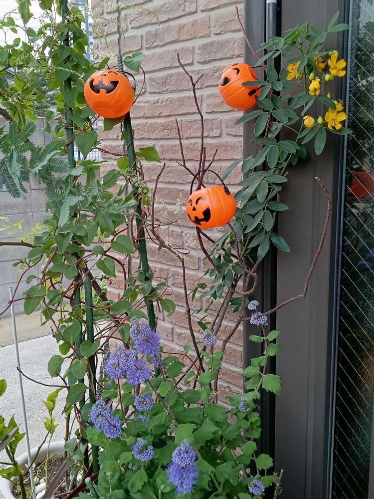 今年2年目のダンギク、綺麗に開花しました…ハローウィン飾りも、ブルーとオレンジ色…映えますね✨️💙🧡💙🧡🎃🧹🧙♀️