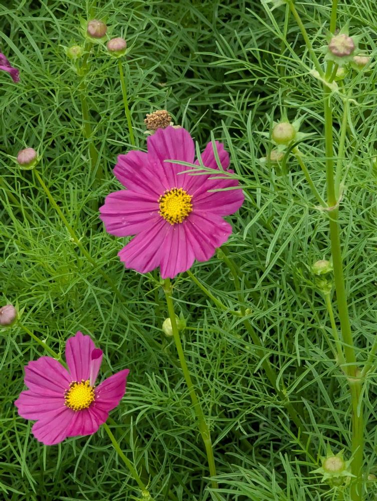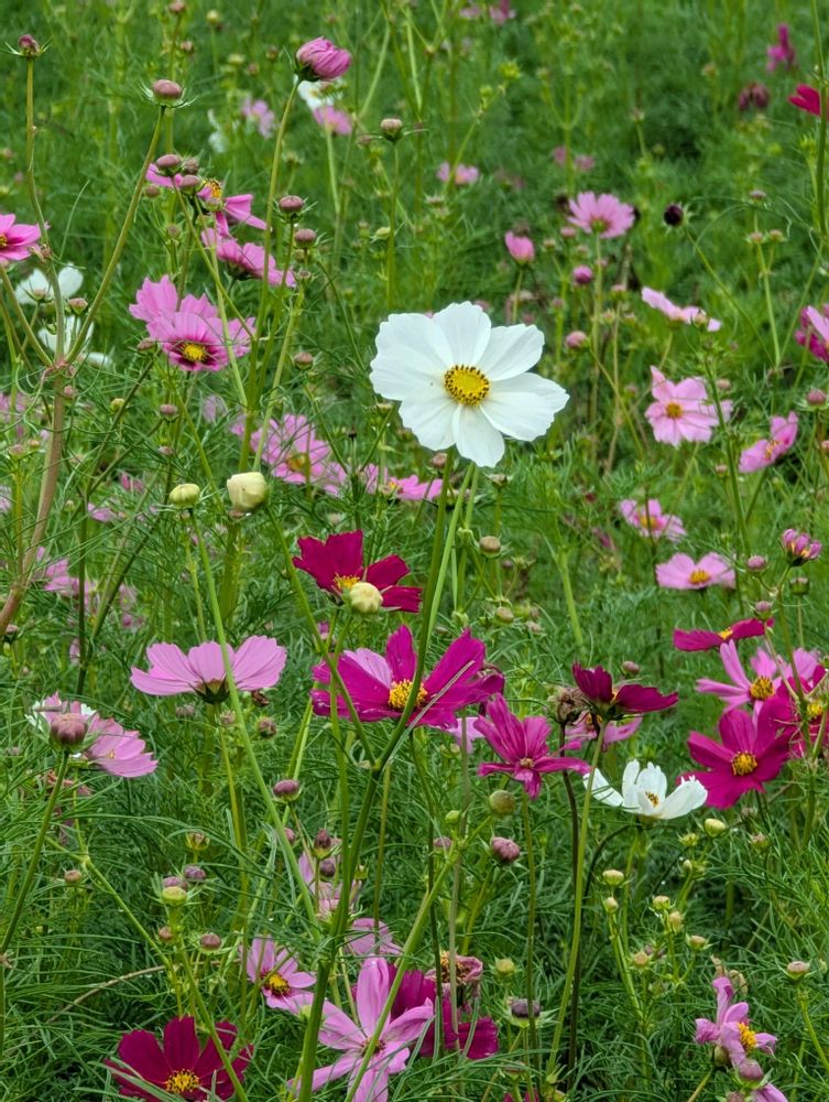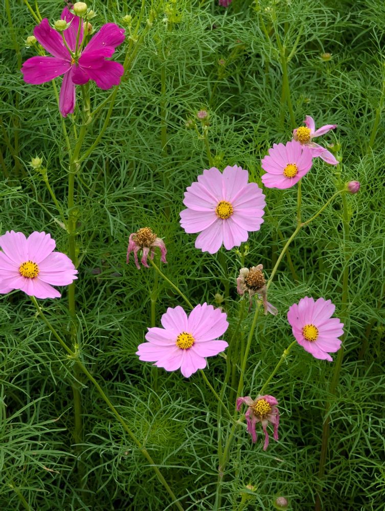 ヒマワリのお隣にコスモスも咲いてました💚🩷🩵❤️💚