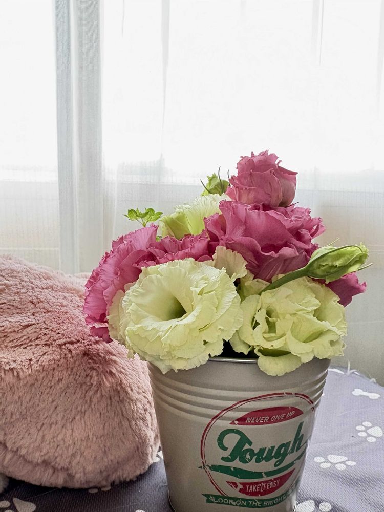友達が大好きなトルコギキョウで、誕生日🎂祝い🎉の花束💐をつくりました