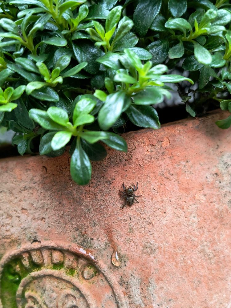 お水をあげるために草をかきあげると毎回ピョンと、でてきて避難するハエトリグモちゃん。
