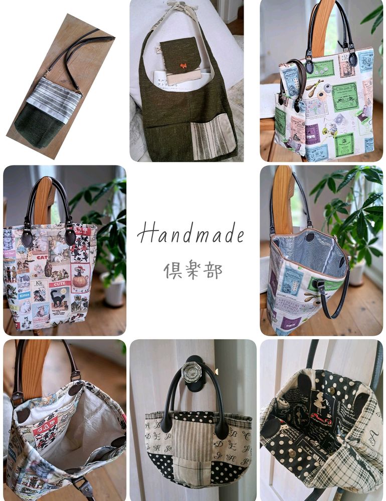 ④市販の買い物ポシェットに穴が空いたので、手持ちの布で簡単なのを作ったり、劣化した数年前の猫柄のバッグを同じ布でリメイクしたりしました