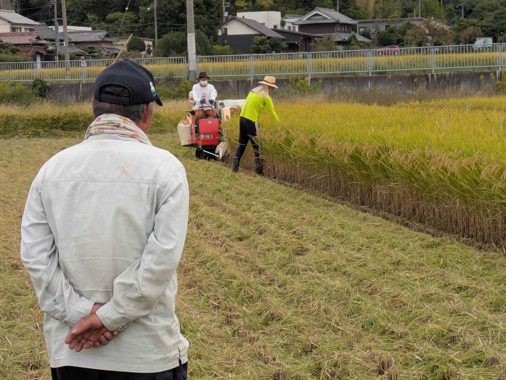 稲刈りの予定で婿さんたちが寄って来てくれました。雨さえ降らんかったらこっちの勝ち➰