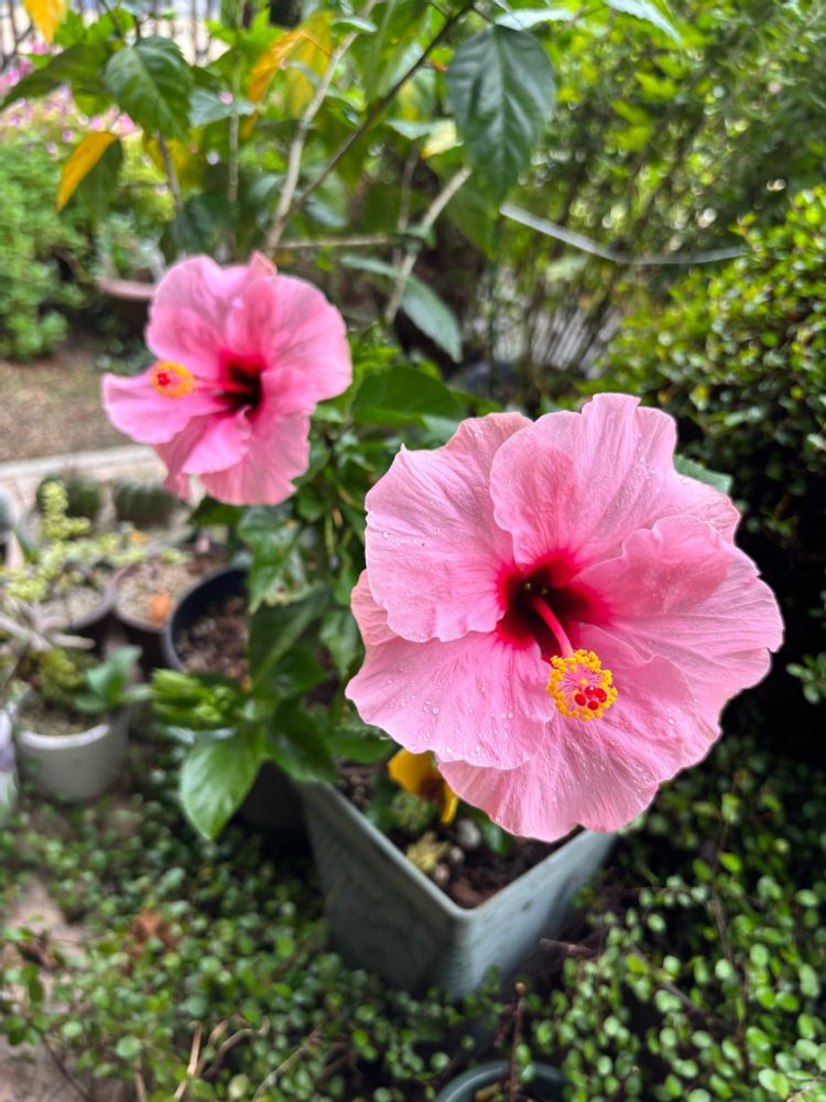 ⑷ ハイビスカスも並んで咲いています🌺🌺夏の暑かった時よりも良く咲いてくれるように思います
