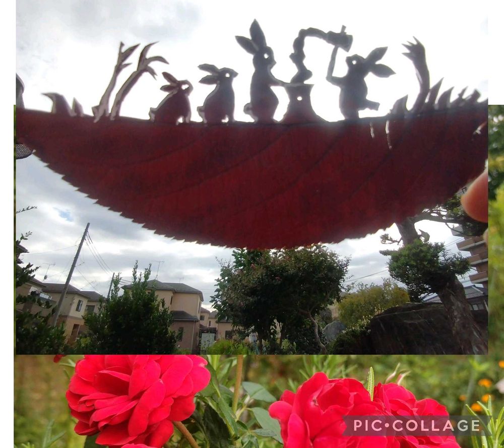 昨年保存していた一枚の葉っぱ。十五夜は過ぎてしまいましたがリトさん葉っぱアート真似っ子です。