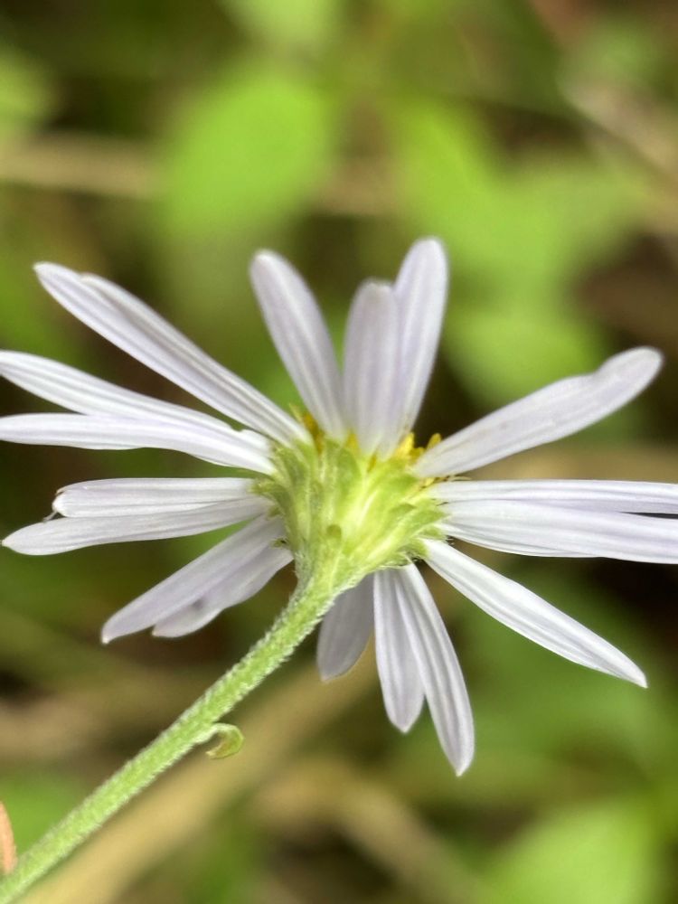 ちょうど近所ではカントウヨメナとユウガギクが一緒に咲いてます。ユウガギクの総苞もカクテルグラス形ですが、花が白く、花のすぐ下にかなり細い披針形の葉が沢山つく事で区別できます⑤