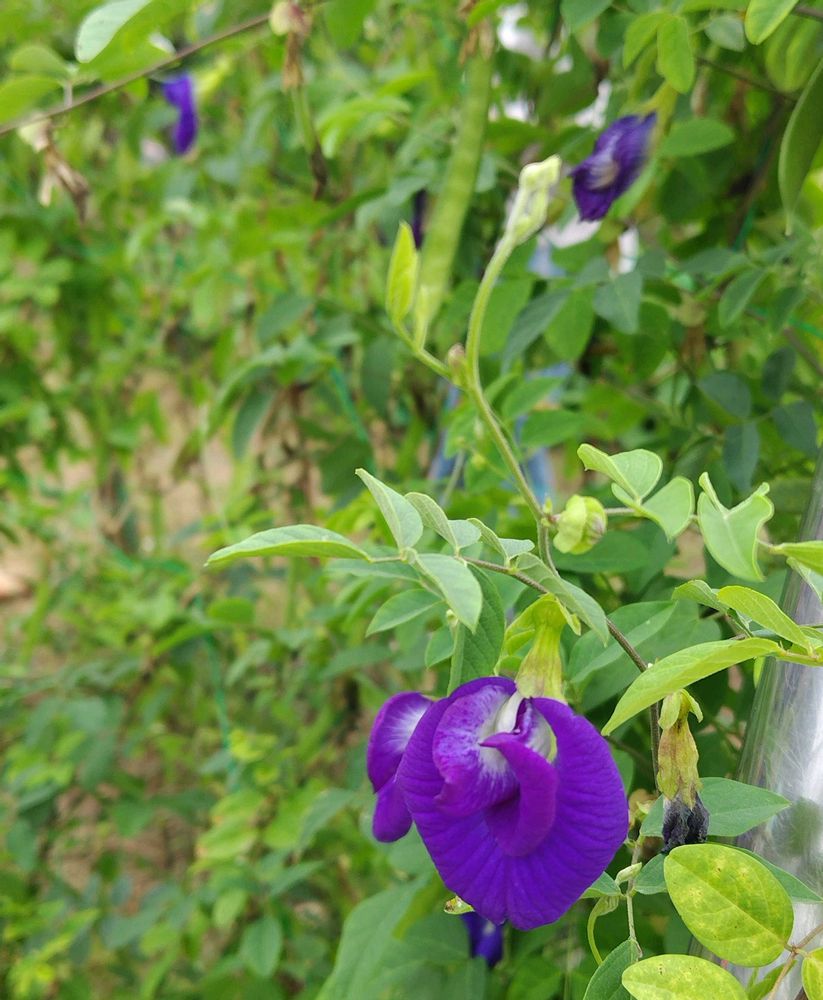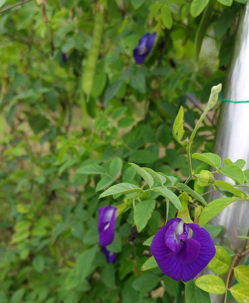 多分園児のおばあちゃん(私もですけど…)だと思われる方が、「珍しい花が咲いてる!何ていう名前だろう?」とおっしゃっていたので、私が「バタフライピーじゃないですか」と…😊