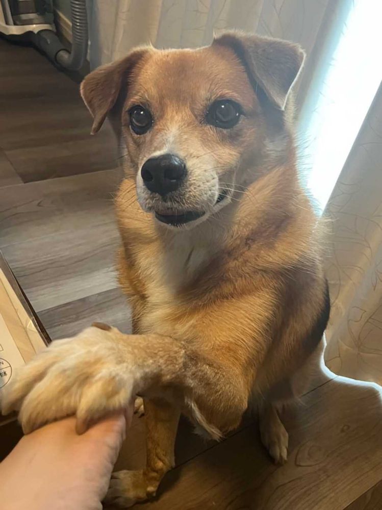 娘が沖縄に猫を連れて嫁に行って 翌月くらいに迷い犬を保護して飼い主が見つからなかったのでそのまま飼ってます…だから歳も分からないけど とっても可愛い仔です🐕 ͗ ͗