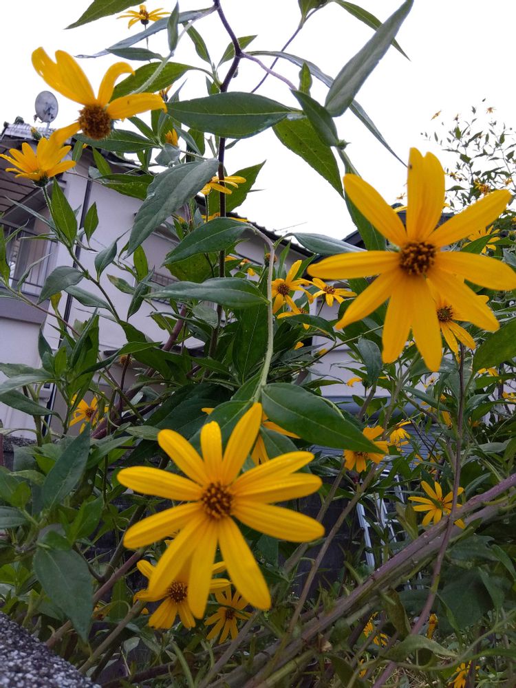 キクイモモドキが今年も天高くぐんぐん成長🌞🌻沢山の花が咲いています🥰水持ちも良く、ご近所にお裾分けして喜んでくれて