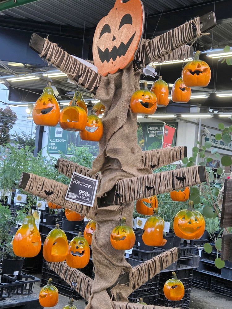 ※先日ガーデンセンターで見掛けたハロウィン飾り🎃風がユラユラまるで🎃ツリー🎄