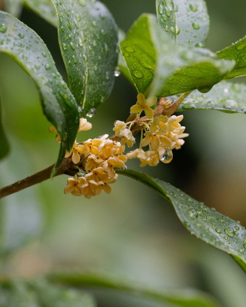 雨粒をまとったキンモクセイに逢えました。2025.10.11.