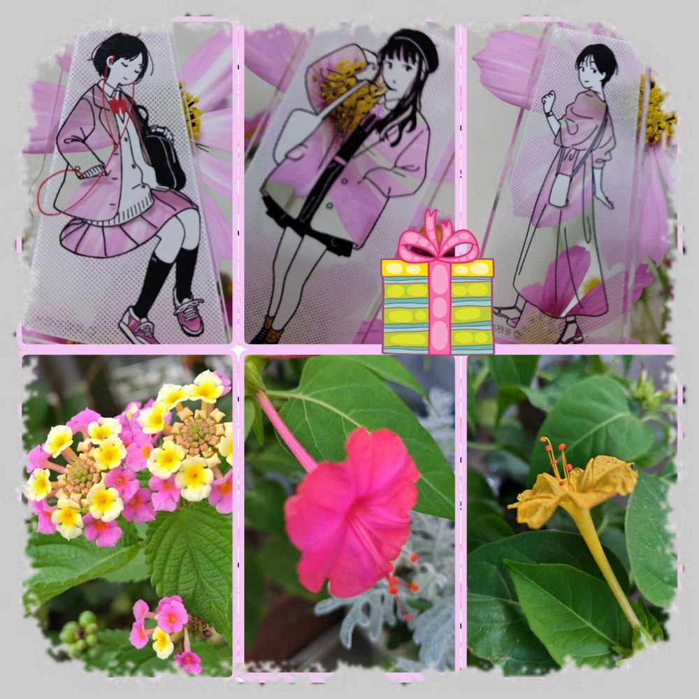 可愛ランタナ🩷🟡とお迎えしたいオシロイバナの㊗️お祝いpic お散歩ちゃんとのコラージュ 嬉しかったです(⁎˃ᴗ˂⁎)♡⤴︎⤴︎