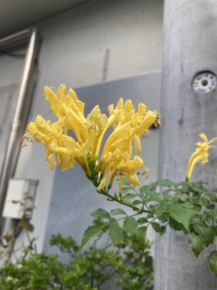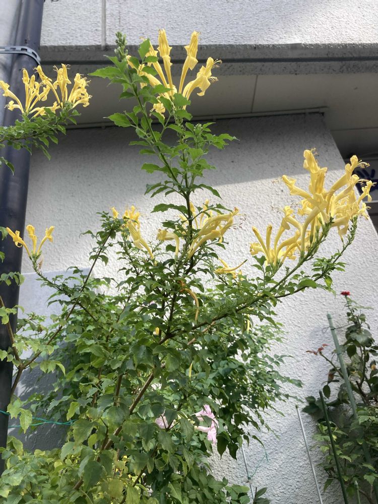 「ヒメノウゼンカズラ(姫凌霄花)」の黄色い花が再び開花。