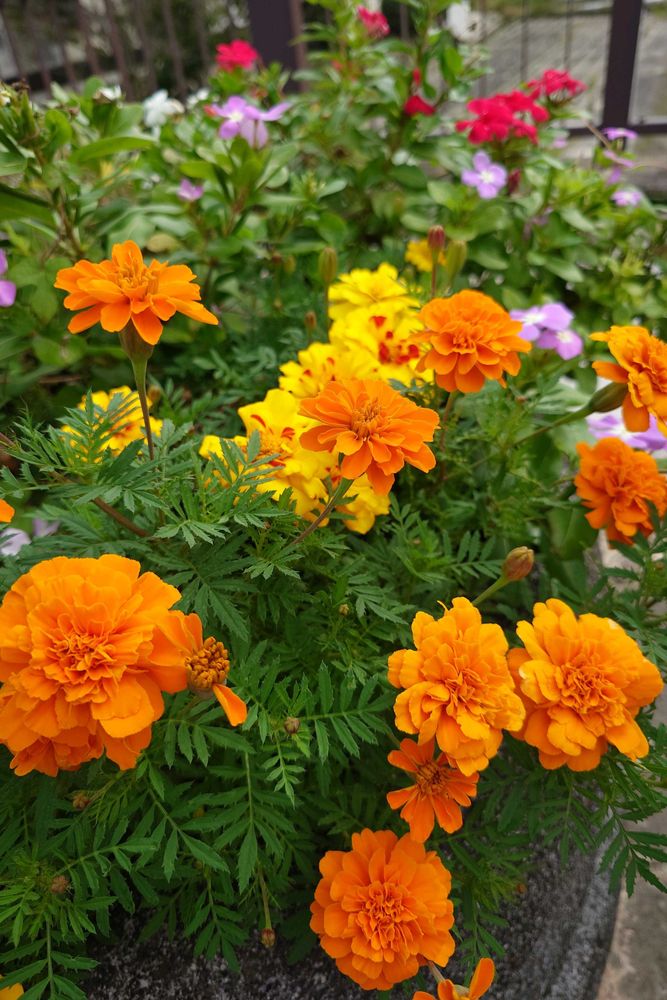 マリーゴールドが元気が出るビタミンカラーで咲いていますね。
