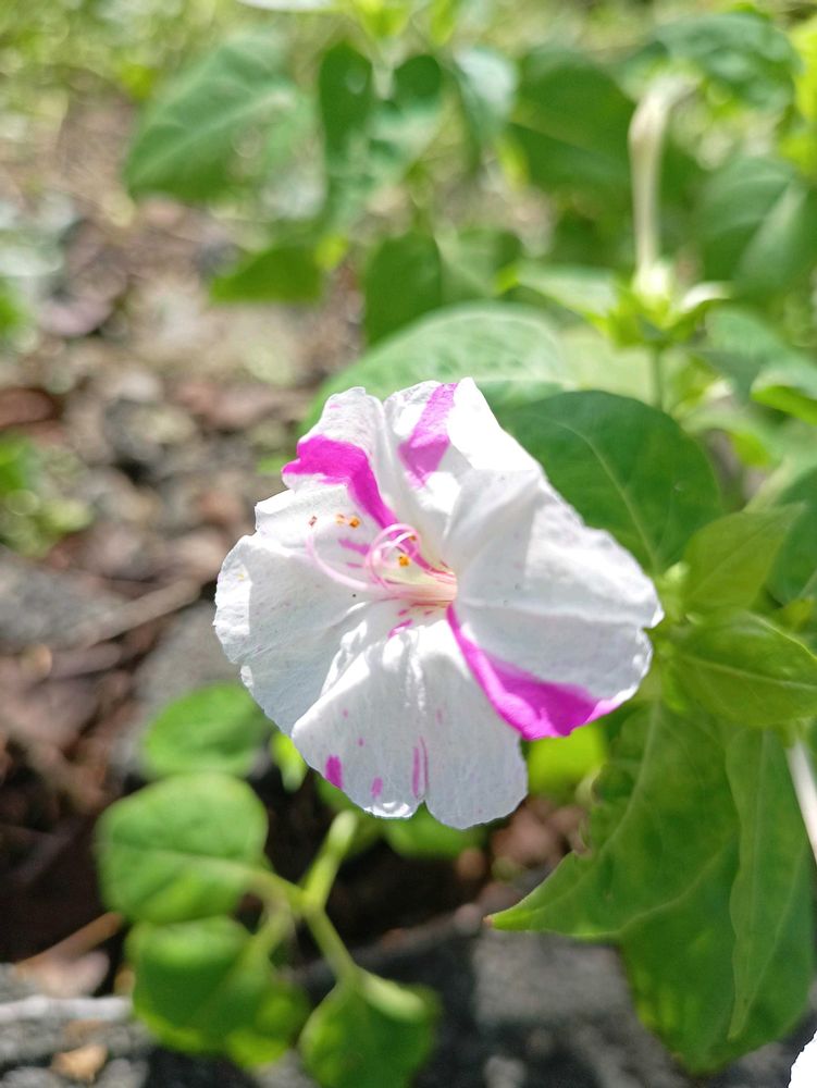 公園入り口の湿っぽい場所に咲いてる綺麗なオシロイバナ。