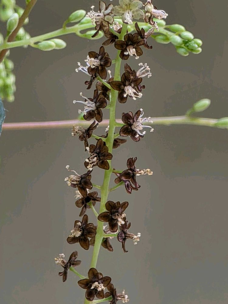 パチパチと弾けたように咲く白い花は大人になるとシックな黒い姿になります🖤