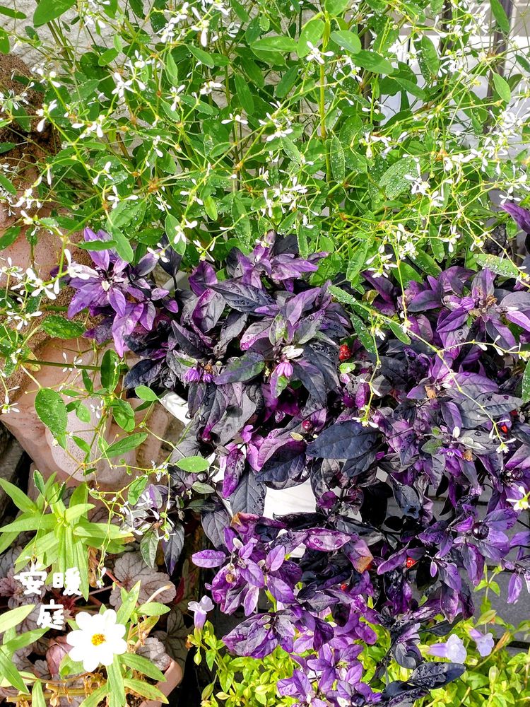 1 まだまだ頑張る観賞用トウガラシとユーフォルビア💜🤍