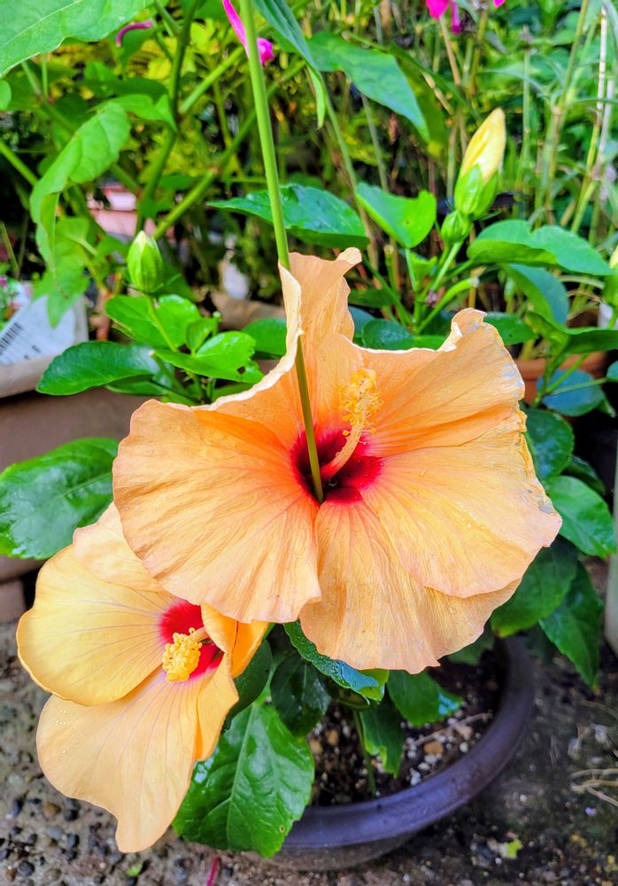 ハイビスカス🌺良い色〜🧡✨✨🧡✨✨🌼コリウスもいい演出✨✨☺️