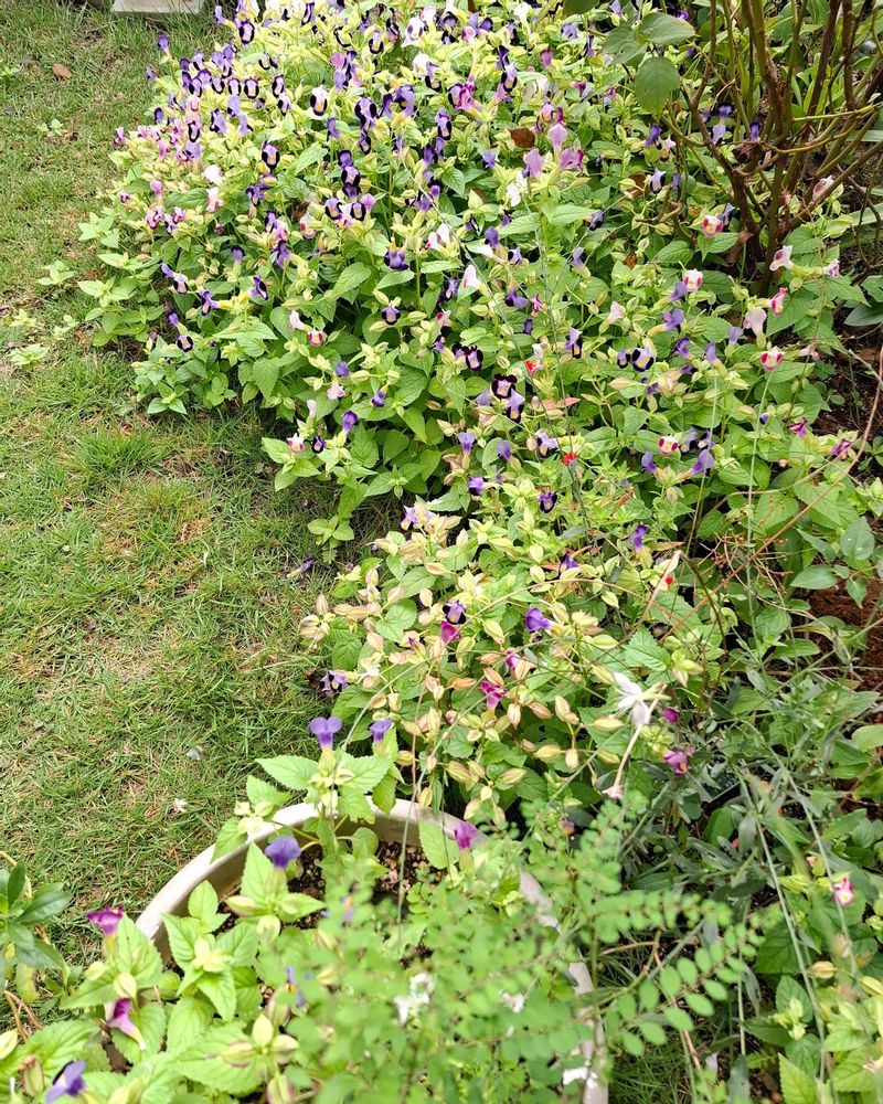 お花や種も増えてこの様に咲いています❗種もあちこちに飛んで小さなトレニア💜💗が咲いて