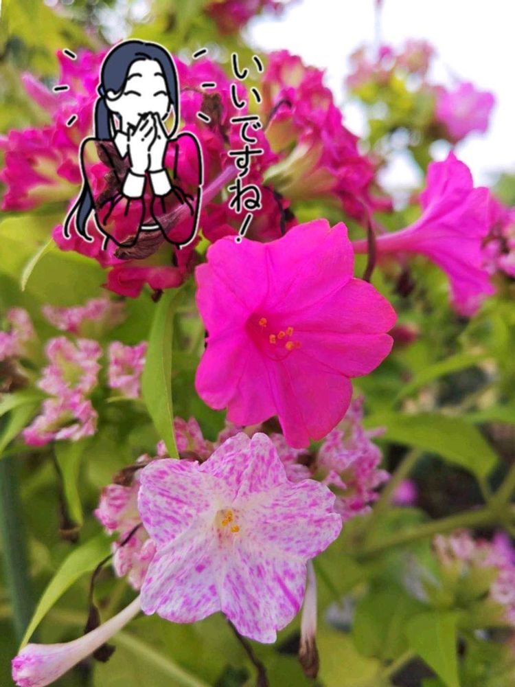 オシロイバナ、2段だと更に華やかですね💗🤍
