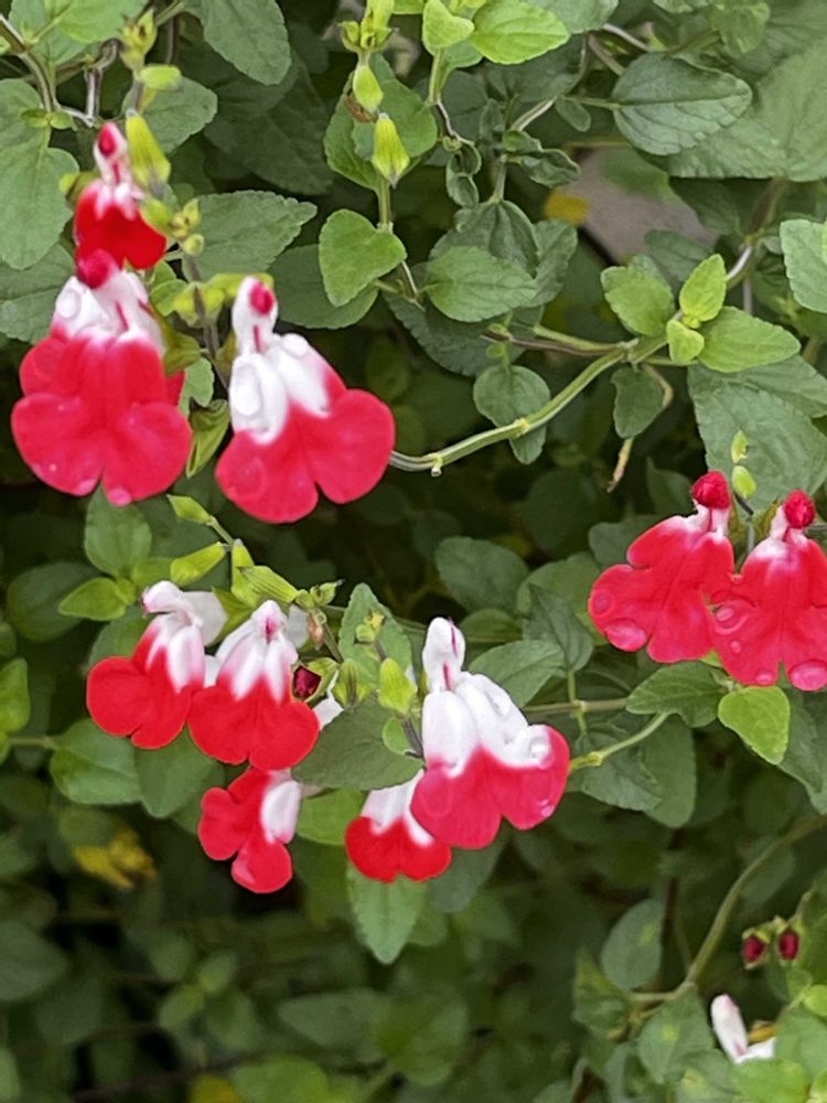 サルビアホットリップス、名前のように可愛い唇のようで可愛い💕雨の雫を受け止めてあげたいです。