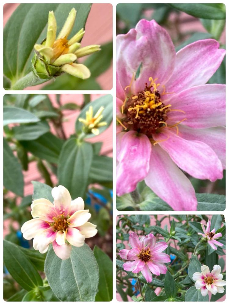 徒長してしまったジニアですが、頑張って花を咲かせています🌸🌸🌸