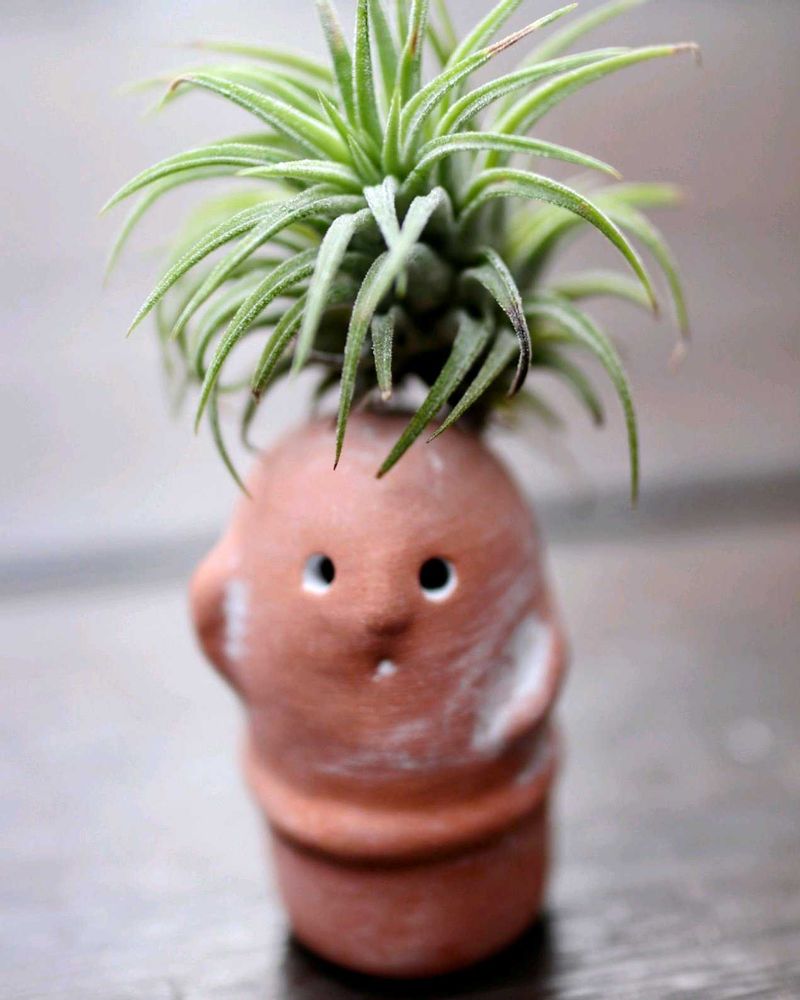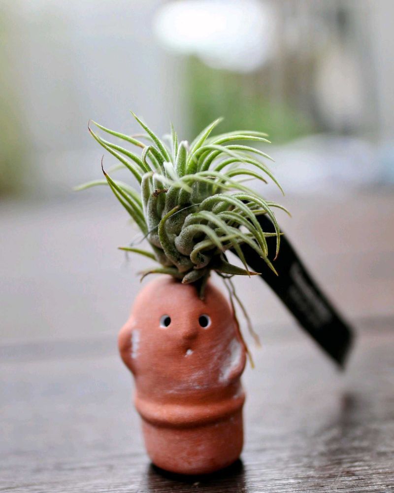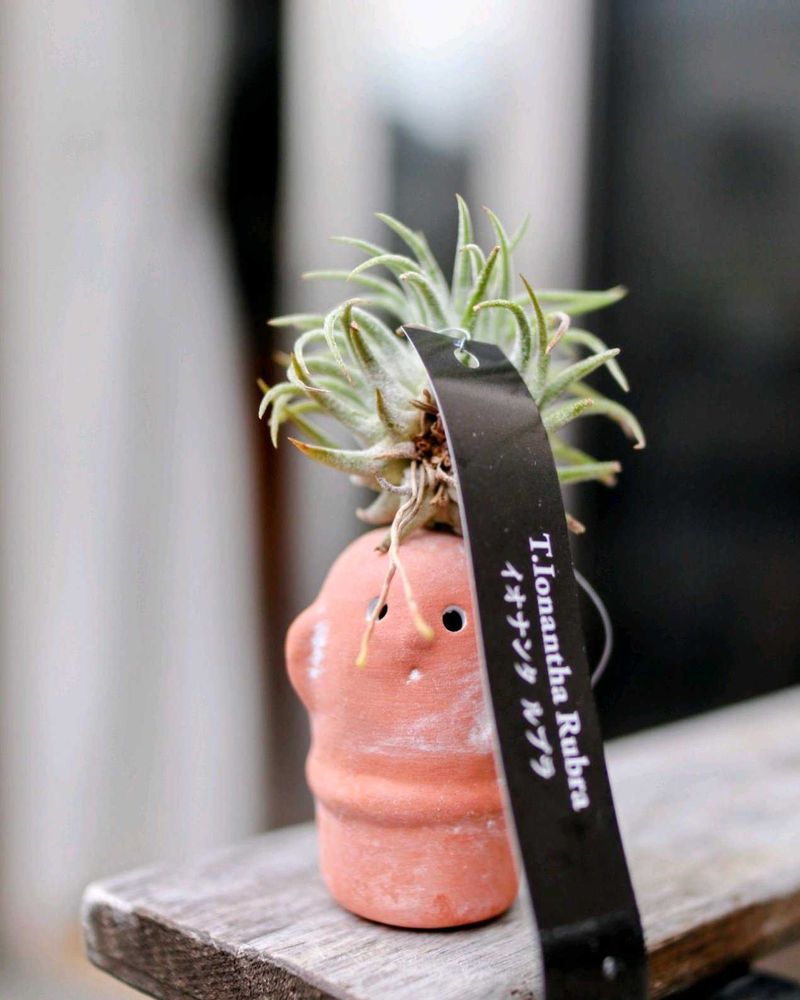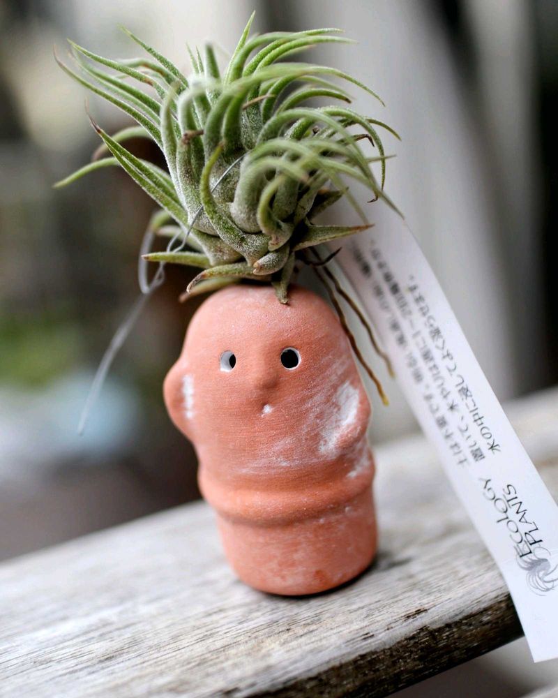 ハニワ買ったけど使い方がわからんので、頭にチランジア乗せました。🐧