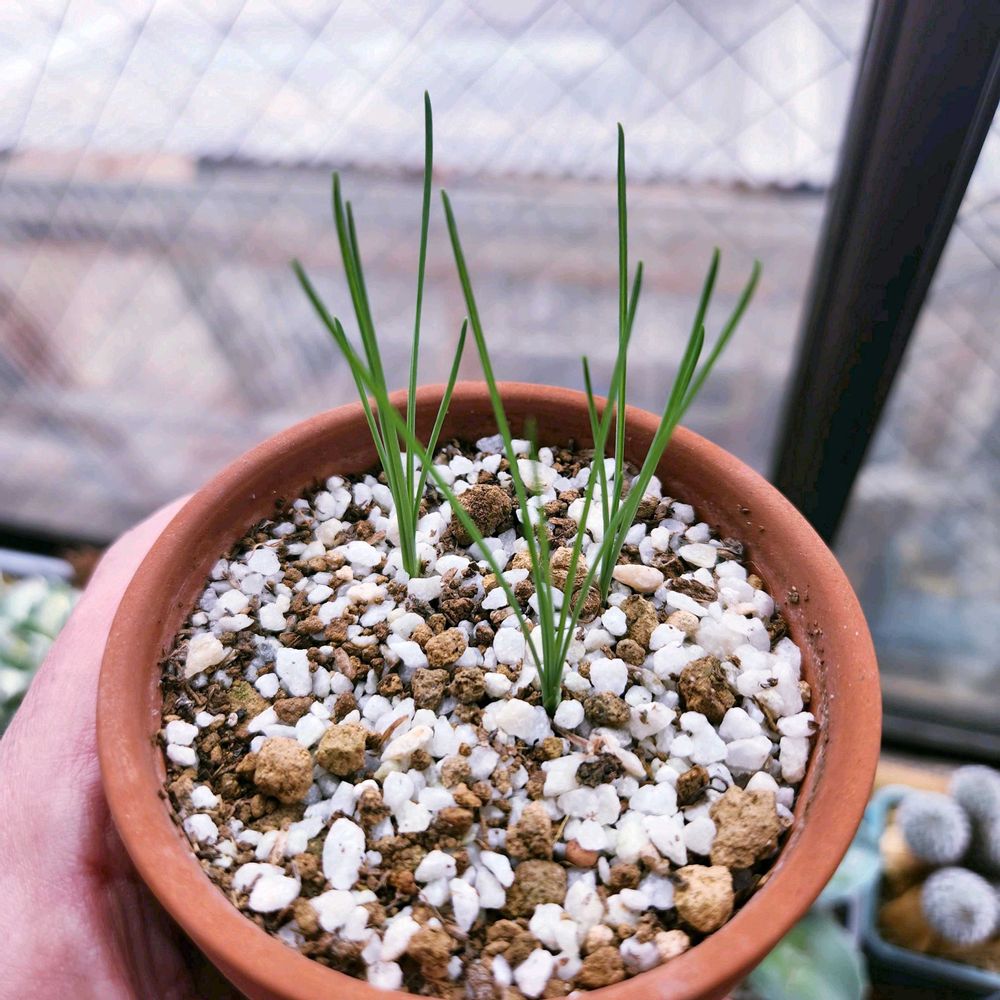 今週初め芽が出たばかりだと油断してたアルブカスピラリスはあっという間に伸びてしまって夏のあいだ軒下で管理してましたが慌てて日の当たる場所に🫤葉が巻かなくなってしまう~😅