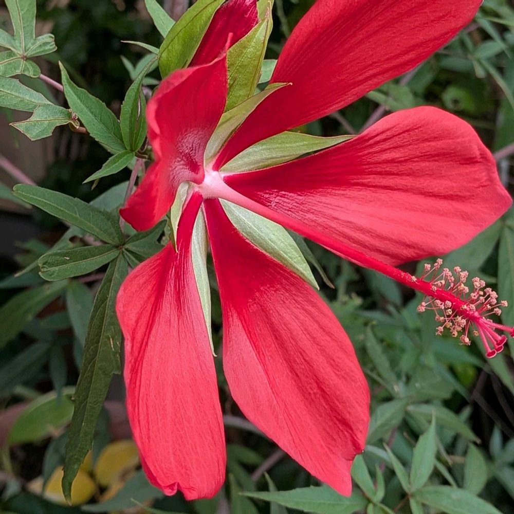 ④新しく咲き出したモミジアオイ 後ろには明日さくであろう蕾がついてます。