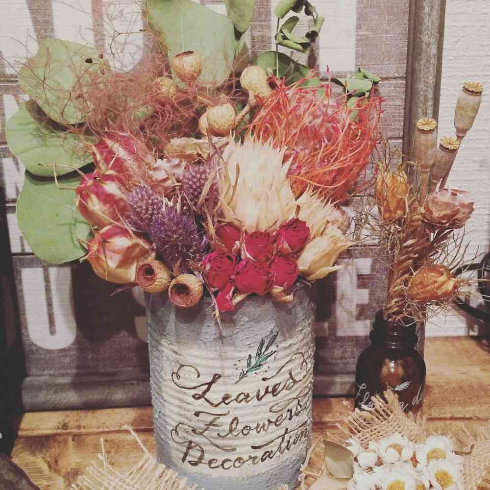 ドライフラワーって吊り下げて飾るもんだと思ってた私でしたが