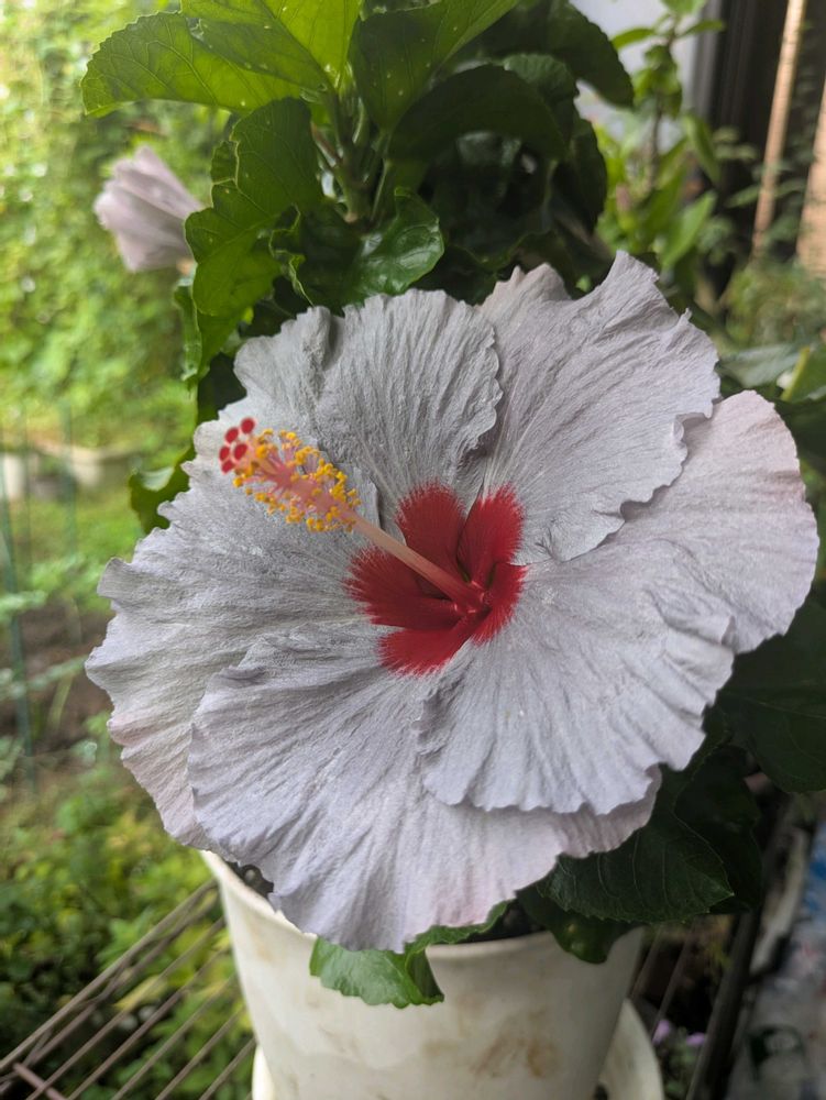ハイビスカス デニムブルーは、昨日咲いた花、涼しくなったら翌日も開いています。曇っているしね。