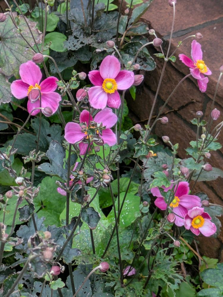 シュウメイギクが咲いてきて、嬉しいです。🩷🧡💛🩷🧡💛