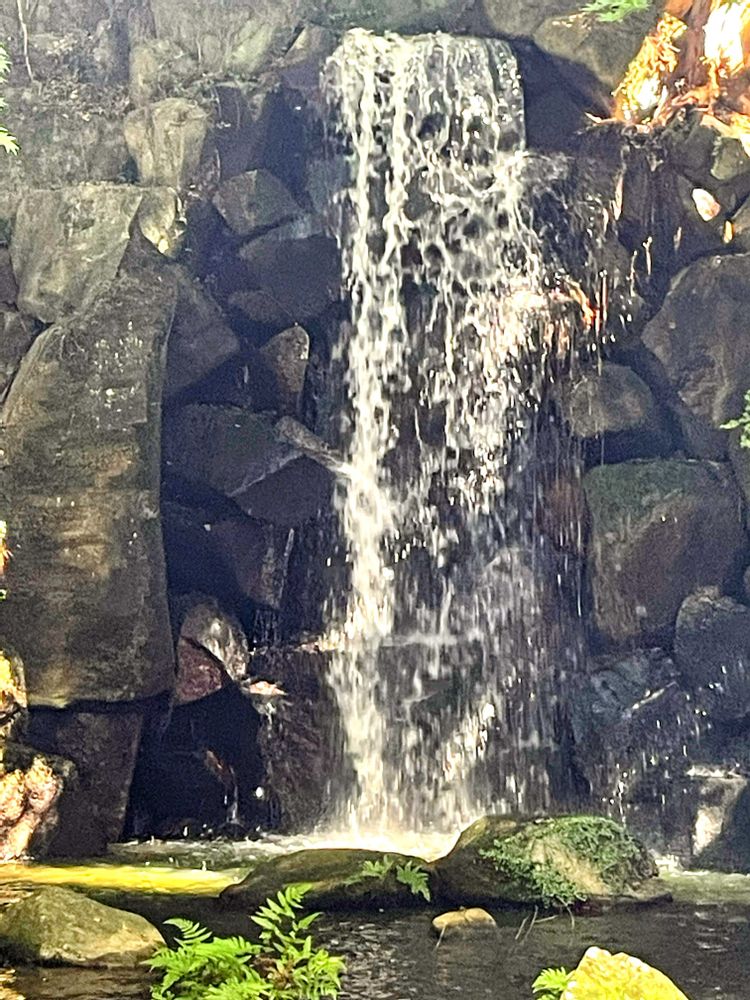 朝の散歩道で,県庁敷地内の滝,気温29℃の中此処は天国、涼しい!の投稿画像
